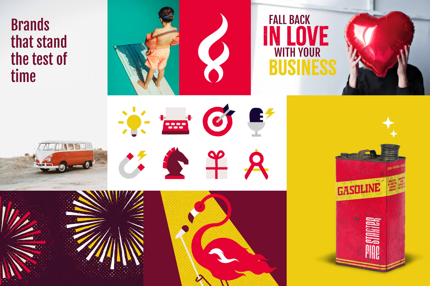 Most agencies shy away from maximalism, but making a splash is what Firestarter is all about. With a world-class creative team in-house, I knew a bold, complex brand would be handled with good taste. I built a massive suite of resources, including illustrations, icons, textures, photography, vibrant colours, and bold type. The challenge? Bringing all these elements together into a brand that instantly conveys what it’s like to work with Firestarter: energising, bold, and oozing with personality.